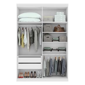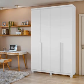 ESPECIFICAÇÕES TÉCNICAS: -Material: MDF; - Acabamento: Pintura UV; - Número de Portas: 4 Portas; - Número de Gavetas: 2 Gavetas; - Número de Nicho: 8 Nichos; - Possui Prateleira? Sim; - Possui Espelho? Não; - Possui Pés? Não; - Material dos Pés: Não Possui; - Possui Puxadores? Sim; - Material dos Puxadores: MDF; - Possui Cabideiros? Sim; - Possui Maleiro? Sim; - Possui espaço para sapatos? Sim; - Produto precisa de montagem? Sim; - Garantia: 3 Meses Contra defeito de fabricação; - Medidas: LarguraxProfundidadexAltura; 154x47x230cm;