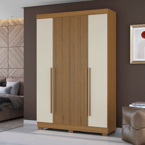 Guarda-roupa 04 portas, 02 gavetas internas com pés. Produzido em MDP 15mm e 12 mm de espessura , proporcionando resistência e durabilidade. Amplo espaço interno, garantindo maior firmeza ao móvel. Puxadores de MDF 25mm, cabideiro de madeira dando maior resistência. Gaveta ampla com melhor fixação, proporcionando maior conforto e comodidade em guardar roupas sem amassar e puxar fios. Corrediça metálica oferecendo durabilidade e um melhor deslize ao abrir e fechar as gavetas. Acabamento texturizado, garantindo a conservação do móvel, além de manter o brilho constante oferece ao móvel beleza, resistência e durabilidade prolongando a vida útil do produto.