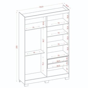 Dimensões do produto: Altura: 235 cm Largura: 154 cm Profundidade: 46,8 cm Peso: 104,65 kg