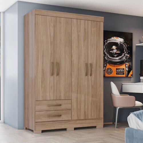 O Roupeiro 04 Portas 02 Gavetas BE12 É um Item indispensável para o bom funcionamento de um cômodo. Possui A 185 x L 108,5 x P 46,5 Cm, Produzido em MDP, Conta com Cabideiro resistente de madeira revestido, 02 gavetas com corrediças metálicas que proporcionam um deslize suave, Puxadores em ABS e Frentes de MDP 15 mm traz harmonia e sofisticação para qualquer ambiente Acabamento da Prateleira: Pintura Escala de Brilho da Prateleira: Fosco Possui Cabideiros: 01 Acabamento da Gaveta: Pintura Escala de Brilho da Gaveta: Brilhante Material do Puxador da Gaveta: ABS Possui Organizador de Gaveta: Não Acabamento da Porta: Pintura Texturizada UV Escala de Brilho da Porta: Brilhante Material do Puxador da Porta: ABS Acabamento dos Pés: Pintura Altura do Espelho: cm Altura dos Pés: 5 Ambiente Principal: Quarto Complexidade da Montagem: Média: pode ser montado por mais de uma pessoa e/ou necessite de maior conhecimento para montagem Cor: Jequitiba Cor do Produto: Jequitibá Cor Interna: Trama Escala de Brilho: Brilhante Espessura do Espelho: mm Formato do Espelho: Retangular Gaveta com Chave: Não Guarda-Roupa Suporta Até (kg): 40 Itens Inclusos: 1 Guarda Roupa, Kit Ferragens e Manual de Montagem Largura do Espelho: cm Linha ou Coleção: B24 Manual de Montagem e Instalação: https://cdn2.madeiramadeira.com.br/atributo/henn-briz-quarto-adulto/1212448-be12-roupeiro-04-pts-02-gav-com-pes.pdf Material da Gaveta: MDP Material da Porta: MDP Material da Prateleira: MDP Material dos Pés: ABS Material Principal: MDP Montagem Flex: Não Necessita Montagem: Sim Origem do Produto: Nacional Peso: 56 Peso Máximo por Gaveta: 3 Peso Máximo por Prateleira: 8 Possui Calceiros: Não Possui Espaço para Vestidos Longos: Não Possui Espelho: Não Possui Espelho Interno: Não Possui Ganchos: Não Possui iluminação: Não Possui Painel de TV: Não Possui Pés: 06 Possui Portas: 04 Possui Prateleiras: 02 Possui Sapateira: Sim Quantidade de Espelho: 01 Recomendações de Uso, Manutenção e Limpeza: Limpar com flanela ou pano macio seco, não utilizar produtos abrasivos, desengordurantes, álcool ou solvente. Não expor o produto diretamente à luz solar e à umidade. Sapatas Niveladoras: Não Sistema de Montagem: Parafusos e Cavilhas Tipo de Corrediça da Gaveta: Metálica Simples Tipo de Dobradiça/Corrediça da Porta: Metálica Tipo de Fixação do Espelho: Molduras Tipo de Gaveta: Externa Tipo de Guarda-Roupa: Solteiro Tipo de Puxador da Gaveta: Externo Tipo de Puxador da Porta: Externo