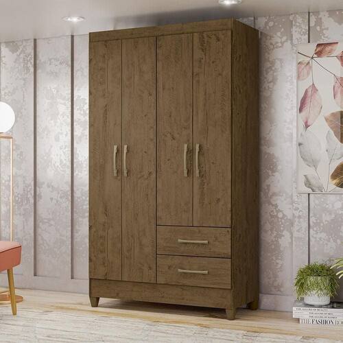 Guarda Roupa Solteiro 4 portas 2 gavetas Chile Castanho Wood - Moval - Marrom Chocolate