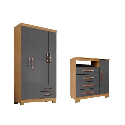 1 Kit Guarda Roupa Modena 4 Portas 2 Gavetas; Cômoda Sapateira 1 Porta 4 Gavetas