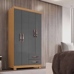Guarda Roupa Solteiro 4 Portas 2 Gavetas com Cômoda Sapateira 1 Porta 4 Gavetas Modena Carvalho Grafite - Combo Stock