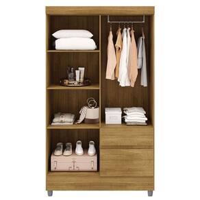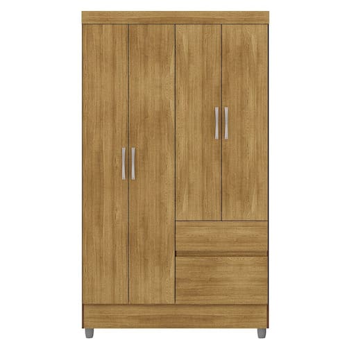 Guarda-Roupa Solteiro 4 Portas 2 Gavetas com Pés Ideval - Nature | Marrom