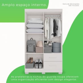 Organize e encontre com mais facilidade suas roupas preferidas! Com o Guarda Roupa Estrela você terá a praticidade de organizar suas coisas do seu jeito. Confeccionado com materiais de qualidade ele é a opção mais acertada para deixar seu dormitório muito mais arrumado. Você não precisa mais procurar, você acaba de encontrar o móvel perfeito para o seu dormitório pensando em como acabar com a desordem e aproveitar todo espaço para guardar roupas, acessórios e o que mais você desejar, ele é a opção perfeita para completar sua casa. Aproveite! Acabamento da Prateleira: Pintura UV Escala de Brilho da Prateleira: Brilhante Possui Cabideiros: Sim Acabamento da Gaveta: Pintura UV Possui Organizador de Gaveta: Não Acabamento da Porta: Pintura UV Escala de Brilho da Porta: Brilhante Material do Puxador da Porta: MDF Altura dos Pés: 5 Altura Máxima dos Pés: 5.0000 Ambiente Principal: Quarto codigo_ean: 7899931146351 Complexidade da Montagem: Média: pode ser montado por mais de uma pessoa e/ou necessite de maior conhecimento para montagem Cor: Branco Cor do Produto: Branco Escala de Brilho: Brilhante Gaveta com Chave: Não Itens Inclusos: 1 Guarda Roupa, Kit Ferragens e Manual de Montagem Linha ou Coleção: ESTRELA PREMIUM Manual de Montagem e Instalação: https://product-hub-prd.madeiramadeira.com.br/889195/documents/cd6343a1-1df3-4c1b-b062-83ff548ec334peiroestrela4portassalleto.pdf Material da Gaveta: MDP Material da Porta: MDP Material da Prateleira: MDP Material dos Pés: Polipropileno Material Principal: MDP modular: Não Necessita Montagem: Sim Origem do Produto: Nacional Peso: 44,5 kg Peso Máximo por Gaveta: 5 kg Peso Máximo por Prateleira: 3 kg Possui Calceiros: Não Possui Espelho: Não Possui Pés: 06 Possui Portas: Sim Possui Prateleiras: Sim Produto Montado: Sim Quantidade de Gavetas: 02 Gavetas Recomendações de Uso, Manutenção e Limpeza: Limpar com flanela ou pano macio seco. Não utilizar produtos abrasivos. Não expor o produto diretamente à luz solar e à umidade. Sistema de Montagem: Parafusos, Cavilhas , Minifix, Dobradiças e Puxadores. Tipo de Corrediça da Gaveta: Metálica Simples Tipo de Dobradiça/Corrediça da Porta: Metálica Tipo de Gaveta: Externa Tipo de Guarda-Roupa: Solteiro Tipo de Puxador da Gaveta: Externo Tipo de Puxador da Porta: Externo