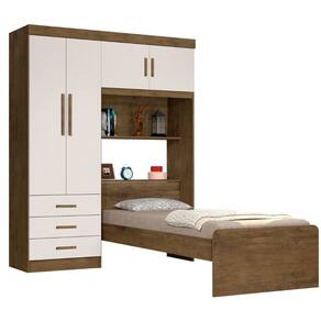 O Guarda Roupa Solteiro 4 Portas 3 Gavetas Cancun JA Móveis é perfeito para quem busca funcionalidade e aproveitamento de espaço. Conta com 3 nichos internos, 1 externo, baú na cabeceira, 4 portas articuladas, 3 gavetas com corrediças metálicas e uma cama de solteiro embutida. Com pintura UV e acabamento em verniz brilho, garante durabilidade e resistência. Acomoda colchão de 0,88m x 1,88m.
