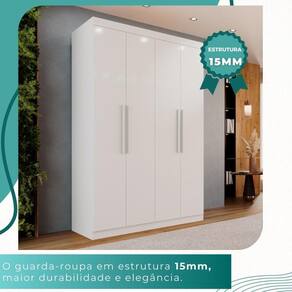 Estilo: modernoMaterial principal: MDP 15 mmEspessura do fundo e fundo da gaveta: 3 mmAcabamento: pintura texturizada UVEscala de brilho: foscaPortas: 4 portas de bater com puxador externoTipo de dobradiça da porta: metálicaNúmero de prateleiras: 5Peso suportado por prateleira: 3 kgNúmero de gavetas: 3 gavetas internasTipo de corrediça da gaveta: metálica telescópicaPeso suportado por gaveta: 5 kgNúmero de cabideiros: 1Sistema de montagem: parafusos e cavilhas