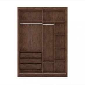 Características: Estrutura em MDP e MDF Pintura com acabamento Print Wood Atóxico e Anti Mofo Bordas com acabamento Soft PU 4 Portas 3 Gavetas Cada Gaveta suporta peso de 3kg Cada prateleira suporta 5kg Corrediça telescópica
