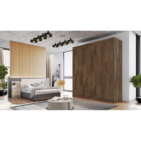 O Roupeiro Nantes une comodidade, espaço e beleza em um só produto. Produzido em 100 % mdf, possui 4 portas de bater e 3 gavetas com corrediças telescópicas e uma linda e pratica sapateira com corrediça telescópica; costas parafusadas que aumenta a resistência do móvel. Este produto conta ainda com prateleiras espaçosas e colmeia e puxadores em madeira. Não espere mais e adquira já esse roupeiro incrível!
