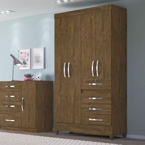Guarda Roupas Solteiro Sobral, mais um produto com a qualidade de quem tem 54 anos de tradição no ramo moveleiro. Um móvel completo, com bastão cabideiro em alumínio, prateleiras e 4 gavetas, sendo que a primeira ainda tem chaves, uma segurança à mais para aquele pertence que necessita um pouco mais de segurança. O produto tem acabamento em impressão UV com relevo fosco, já vai com pezinhos em PVC, os puxadores são em plástico com acabamento cromado. Acabamento da Prateleira: Impressão Escala de Brilho da Prateleira: Semi-Brilho Possui Cabideiros: 01 Acabamento da Gaveta: Impressão Escala de Brilho da Gaveta: Fosco Material do Puxador da Gaveta: Plástico Possui Organizador de Gaveta: Não Acabamento da Porta: Impressão Escala de Brilho da Porta: Fosco Material do Puxador da Porta: Plástico Acabamento dos Pés: Poliéster : 204 cm do Espelho: 90 cm dos Pés: 7 cm Ambiente Principal: Quarto calculo: unidade Complexidade da Montagem: Média: pode ser montado por mais de uma pessoa e/ou necessite de maior conhecimento para montagem Cr: Castanho Wood Cr do Produto: Castanho Wood Cr Flex: Não Cr Interna: Avelã Escala de Brilho: Semi-Brilho Espessura do Espelho: 3 mm Estilo: Moderno Gaveta com Chave: Sim Guarda-Roupa Suporta Até (kg): 58 kg Informações Complementares: Primeira gaveta do guarda roupa possui chave Itens Inclusos: 1 Guarda Roupa, Kit Ferragens e Manual de Montagem : 111 cm do Espelho: 21 cm Linha ou Coleção: Smart Manual de Montagem e Instalação: https://cdn2.madeiramadeira.com.br/atributo/moval/741345-640-20-8701-sobral.pdf Material da Gaveta: MDP Material da Porta: MDP Material da Prateleira: MDP Material dos Pés: PVC Material Principal: MDP Montagem Flex: Não Necessita Montagem: Sim Origem do Produto: Nacional Peso: 66,207 kg Peso Máximo por Gaveta: 6 kg Peso Máximo por Prateleira: 6 kg Possui Calceiros: Não Possui Espaço para Vestidos Longos: Não Possui Espelho: Não Possui Espelho Interno: Não Possui Ganchos: Não Possui Gavetas: 04 Possui iluminação: Não Possui Painel de TV: Não Possui Pés: 04 Possui Portas: 04 Possui Prateleiras: 03 Possui Sapateira: Não : 47 cm Recomendações de Uso, Manutenção e Limpeza: Deve ser utilizado na limpeza um pano macio e limpo - não utilizar produtos abrasivos Sapatas Niveladoras: Não Sistema de Montagem: Parafusos, Buchas, Cavilhas status-cadastro: Aprovado Tamanho: Tipo de Corrediça da Gaveta: Metálica Simples Tipo de Dobradiça/Corrediça da Porta: Metálica Tipo de Gaveta: Externa Tipo de Guarda-Roupa: Solteiro Tipo de Porta: Bater Tipo de Puxador da Gaveta: Externo Tipo de Puxador da Porta: Externo