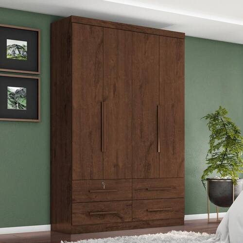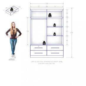 Características: 4 Portas 4 Gavetas, uma gaveta com chave e tambor de aço Puxadores em MDF Corrediças telescópicas Cabideiro metálicos Estrutura MDP 15mm Gaveta suporta peso de até 3kg