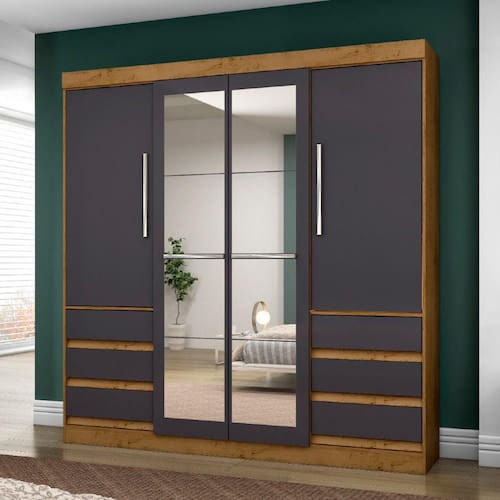 Guarda Roupa Solteiro 4 Portas 6 Gavetas com Espelho 1577 Araplac - Cinza