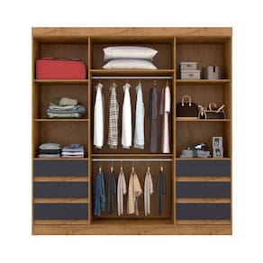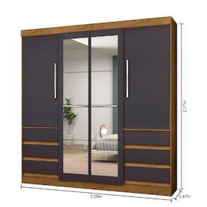 Guarda Roupa Solteiro 4 Portas 6 Gavetas com Espelho 1577 Araplac - Cinza