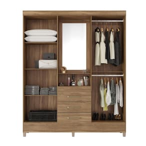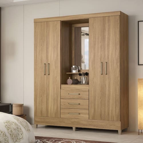 O Guarda Roupa Solteiro Capelinha Persia Demóbile pois como diferencial um Nicho central e espelho são os primeiros atrativos do guarda roupa que agrega alto desempenho ao proporcionar em seu interior, prateleiras com capacidade de acomodar grandes pertences como: travesseiros, caixas, cobertores e edredons. Nos nichos podem ser distribuídos pequenos acessórios e até mesmo objetos decorativos. É confeccionado em MDP de alto padrão com acabamento em pintura UV. Cabideiros metálicos e corrediças nas gavetas também contribuem para melhor funcionalidade.