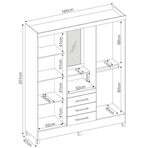 Dimensões: Altura: 201 cm Largura: 165 cm Profundidade: 47 cm Peso: 84 kg