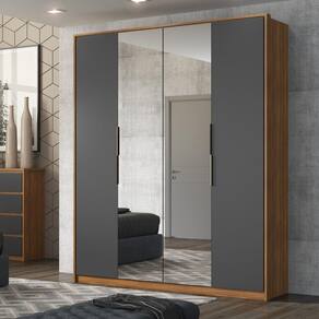 Características: Estrutura em MDP Acabamento UV 4 Portas, sendo 2 com espelhos 3 Gavetas Corrediças telescópicas Cabideiro