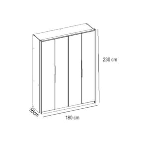 Dimensões: Altura: 230 cm Largura: 180 cm Profundidade: 55 cm Peso: 148,2 kg