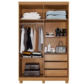 Estrutura em MDP 4 Portas 3 Gavetas Corrediças telescópicas 2 Prateleira Espaço para maleiro Cabideiro em alumínio Pés e puxadores na tonalidade do produto