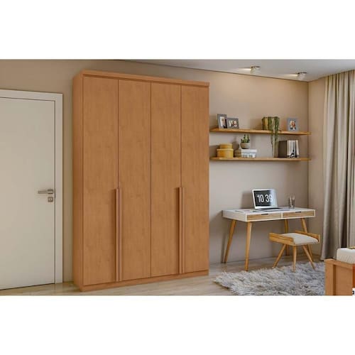 Guarda Roupa Solteiro 4 Portas E 2 Gavetas Alonzo Plus Amendoa Clean - Lopas