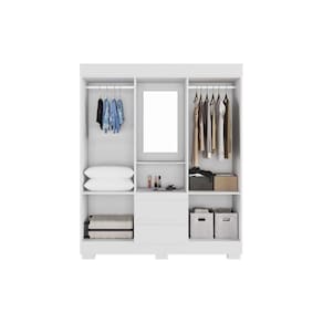 Guarda Roupa Solteiro 4 Portas e 2 Gavetas c/ 1 Espelho Isabely Nature/Off White - ACP - Blush