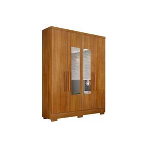 Guarda Roupa Solteiro 4 Portas e 2 Gavetas c/ Espelho e Pés Milly/Veneza Cumaru - Novo Horizonte