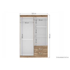 Dimensões(Cm): Comprimento(Profundidade): 120cm x Largura: 46,3cm x Altura: 183cm