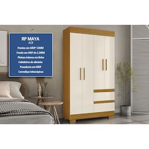 Guarda Roupa Solteiro 4 Portas e 2 Gavetas Maya Cinamomo/Off White - ACP