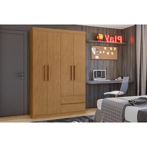 Guarda Roupa Solteiro 4 Portas e 2 Gavetas Zeus Amêndoa - Lopas