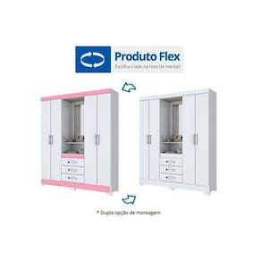 Guarda Roupa Solteiro 4 Portas e 3 Gavetas c/ Espelho Briz B24 Branco/Rosa - Henn