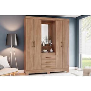 Tipo de Cabideiro - Aéreo Material dos Cabideiros - Cabideira Metálico Diferenciais das Portas - Porta c/ Espelho Quantidade de Portas - 4 Portas de Abrir Tipo de Corrediça - c/ Corrediças Metálicas Quantidade de Gavetas - 3 Tipo dos Pés - ABS/PVC - Pés Opcionais Quantidade de Prateleiras - 5 Quantidade de Nichos - 1 Nicho