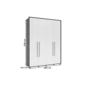 Material do Calceiro - Calceiro Metálico Material dos Cabideiros - Cabideira Metálico Tipo de Porta do Guarda-Roupa - Portas de Bater Material das Portas - Portas em MDP Quantidade de Portas - 4 Portas de Abrir Material das Gavetas - Gavetas em MDP Tipo de Corrediça - c/ Corrediças Telescópicas Quantidade de Gavetas - 3 Tipo dos Pés - Pés Opcionais Material das Prateleiras - Prateleiras em MDP