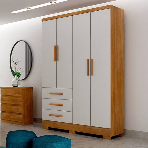 Guarda roupa Solteiro 4 portas 3 gavetas telescópicas Encanto - NOVO HORIZONTE Guarda Roupa Solteiro Encanto 4 Portas 3 Gavetas Telescópicas: organização e elegância para o seu quarto! O Guarda Roupa Solteiro Encanto 4 Portas 3 Gavetas Telescópicas da Novo Horizonte é a escolha ideal para quem busca um móvel completo, prático e funcional para organizar suas roupas e acessórios. Com design moderno e linhas retas, o Guarda Roupa Encanto se integra perfeitamente à sua decoração, proporcionando um visual organizado e sofisticado ao quarto. Detalhes que fazem a diferença: Espaço amplo: O guarda roupa possui 4 portas de bater e 3 gavetas com corrediças telescópicas, oferecendo amplo espaço para guardar roupas, calçados, acessórios e outros pertences.Organização: As gavetas com corrediças telescópicas facilitam o acesso aos seus pertences, permitindo que você visualize tudo o que está guardado.Cabideiros em alumínio: Os cabideiros em alumínio são mais resistentes e duráveis que os de madeira, além de serem mais fáceis de limpar.Acabamento em pintura UV: O acabamento em pintura UV de alta qualidade garante beleza e durabilidade ao guarda roupa, além de ser fácil de limpar.Qualidade Novo Horizonte: A Novo Horizonte é uma empresa renomada no mercado de móveis, reconhecida pela qualidade de seus produtos e pelo excelente atendimento ao cliente. Características: