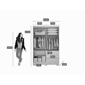 Dimensões do guarda roupa: Altura: 205 cmLargura: 120 cmProfundidade: 46,5 cmPeso: 40,8 kg