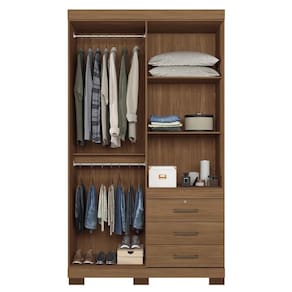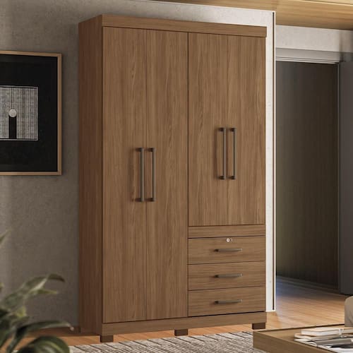 O guarda-roupa Havana Santos Andirá 4.3 é o produto ideal para você elaborar melhor o seu ambiente e armazenar suas roupas trazendo mais elegância para o seu quarto. Esse roupeiro possui 4 portas resistentes que revelam um espaço interno preparado para guardar suas roupas e objetos pessoais. As 3 amplas gavetas externas possuem corrediça metálica que facilitam o seu dia a dia ao trazer a leveza no movimento desse compartimento. Os 2 cabideiros em alumínio e os calceiros são resistentes, deixam esse guarda-roupa com gavetas mais organizado e facilitam a arrumação das suas roupas, sapatos e objetos pessoais. Além disso esse guarda-roupa moderno possui 3 prateleiras firmes e capazes de sustentar seus utensílios de forma organizada, segura e prática. Os puxadores em ABS são bonitos e proporcionam um toque a mais de luxuosidade ao seu produto. Uma das gavetas desse guarda-roupa 4 portas possui chave, o que proporciona mais segurança e proteção ao guardar seus pertences. A estrutura e os pés desse guarda-roupa são em madeira MDP de alta qualidade, durável e capaz de proporcionar mais estilo ao seu dormitório. Nesse mesmo sentido, temos o acabamento em verniz com escala brilhante resistente contra os efeitos do tempo e que facilita no momento da limpeza do seu produto. Tudo isso faz do guarda-roupa Havana Santos Andirá 4.3 ideal para embelezar o seu ambiente e trazer mais praticidade na organização dos seus pertences.