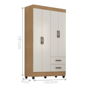 Feito em MDP. Contém 4 portas, 1 cabideiro em alumínio e 2 gavetas com corrediças metálicas facilitando a abertura e deslizamento.