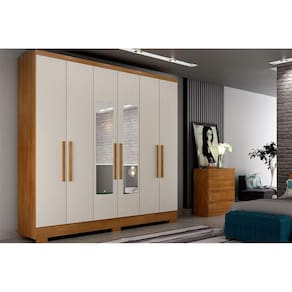 Guarda Roupa Solteiro 6 Portas (2 c/ Espelho) e 4 Gavetas c/ Pés Milly/Veneza Cumaru/Fendi 25 - Novo Horizonte
