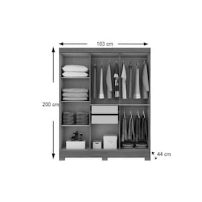 Dimensões(Cm): Comprimento(Profundidade): 44cm x Largura: 163cm x Altura: 200cm