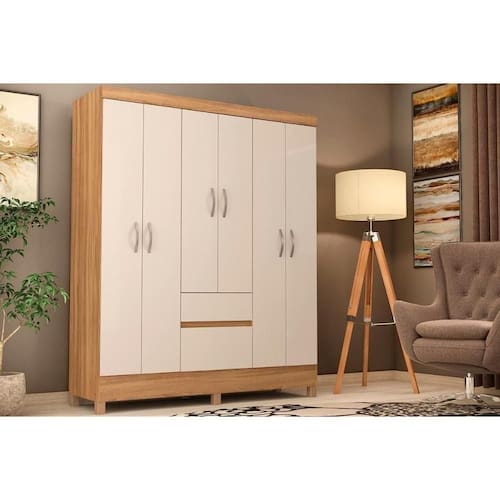 Guarda Roupa Solteiro 6 Portas e 2 Gavetas Flash II Amêndola/Off White - Demóbile