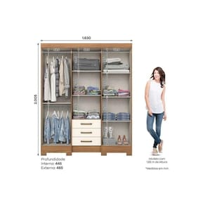 Tipo de Cabideiro - Aéreo Material dos Cabideiros - Cabideira Metálico Diferenciais das Portas - Porta c/ Espelho Tipo de Corrediça - c/ Corrediças Metálicas Quantidade de Gavetas - 3
