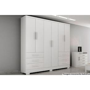 Guarda Roupa Solteiro 6 Portas e 6 Gavetas c/Pés Encant Branco - Novo Horizonte