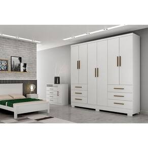 Guarda Roupa Solteiro 6 Portas e 6 Gavetas c/Pés Encant Branco - Novo Horizonte