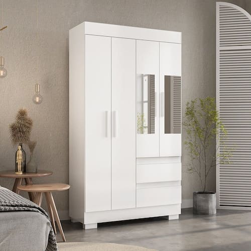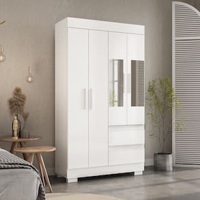 Descubra a combinação perfeita de resistência e elegância com o Guarda Roupas Chantrieri. Com estrutura em MDP, acabamento em pintura UV e espelhos em 2 portas, conferem uma qualidade refinada, destacando cada detalhe do móvel. Suas gavetas deslizam suavemente por corrediças telescópicas, proporcionando praticidade no dia a dia. Seu interno possui cabideiro em alumínio e prateleiras para uma organização completa. Acabamento da Prateleira: Pintura UV Escala de Brilho da Prateleira: Semi-Brilho Possui Cabideiros: Sim Acabamento da Gaveta: Pintura UV Escala de Brilho da Gaveta: Semi-Brilho Material do Puxador da Gaveta: MDF Possui Organizador de Gaveta: Não Acabamento da Porta: Pintura UV Escala de Brilho da Porta: Semi-Brilho Material do Puxador da Porta: MDF Acabamento dos Pés: Pintura Altura do Espelho: 60 cm Altura dos Pés: 5 cm Ambiente Principal: Quarto codigo_ean: 7909903763001 Complexidade da Montagem: Baixa: pode ser montado por uma pessoa sozinha Cor: Branco Cor do Produto: Branco Cor Interna: Linho Escala de Brilho: Semi-Brilho Espessura do Espelho: 3 mm Formato do Espelho: Retangular Gaveta com Chave: Não Guarda-Roupa Suporta Até (kg): 80 kg Informações Complementares: Cabideiro em alumínio. Itens Inclusos: 1 Guarda Roupas, kit ferragens e manual de montagem Largura do Espelho: 40 cm Linha ou Coleção: Chantrieri Manual de Montagem e Instalação: https://product-hub-prd.madeiramadeira.com.br/917641/documents/e5691b5b-40f1-4fa2-bb1e-34624f532d0e2074527453317189798443455.pdf Material da Gaveta: MDP Material da Porta: MDP Material da Prateleira: MDF Material dos Pés: Plástico Material Principal: MDP modular: Não Montagem Flex: Não Necessita Montagem: Sim Origem do Produto: Nacional Peso: 50,5 kg Peso Máximo por Gaveta: 5 kg Peso Máximo por Prateleira: 7 kg Possui Calceiros: Não Possui Espelho: Sim Possui Pés: 04 Possui Portas: Sim Possui Prateleiras: Sim Produto Montado: Sim Quantidade de Espelho: 02 Espelhos com Tamanhos Iguais Quantidade de Gavetas: 02 Gavetas Quantidade de Prateleiras: 02 Prateleiras Recomendações de Uso, Manutenção e Limpeza: Para limpar não use nenhum tipo de produto, tais como sabão, esponja de aço, álcool e lustra-móveis. Use somente uma flanela seca. Não molhe nem exponha o móvel à umidade ou a luz solar diretamente ou outra forma de calor. Não encoste o móvel na parede. Não o arreste. Se precisar mudar o móvel de lugar, esvazie por completo o móvel, não o arraste, com ajuda de outras pessoas suspenda o móvel de forma segura e o posicione no lugar desejado. Sistema de Montagem: Parafusos, Cantoneiras e Minifix. Suporta Até (kg): 80 kg Tipo de Corrediça da Gaveta: Metálica Telescópica Tipo de Dobradiça/Corrediça da Porta: Metálica Tipo de Fixação do Espelho: Parafusos Tipo de Gaveta: Externa Tipo de Guarda-Roupa: Solteiro Tipo de Puxador da Gaveta: Não Possui Tipo de Puxador da Porta: Externo
