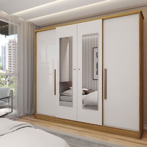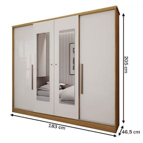 O(a) Guarda-Roupa Solteiro Adam 4 Portas 2 Gavetas com Espelho Marrocos/Off White - Loja é produzido em MDP na escala de brilho Semi-Brilho, e possui um grau de dificuldade de montagem: Médio.