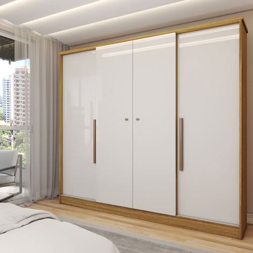 O(a) Guarda-Roupa Solteiro Adam 4 Portas 2 Gavetas Marrocos/Off White - Loja é produzido em MDP na escala de brilho Semi-Brilho, e possui um grau de dificuldade de montagem: Médio.