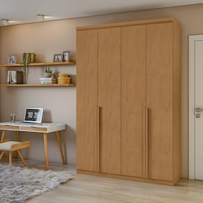 Guarda-Roupa Solteiro Alonzo 4 portas 2 Gavetas Amêndoa Clean - Marrom