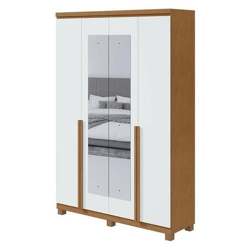Guarda Roupa Solteiro Alonzo 4 Portas Amêndoa Clean Branco com Espelho e Pés - Lopas