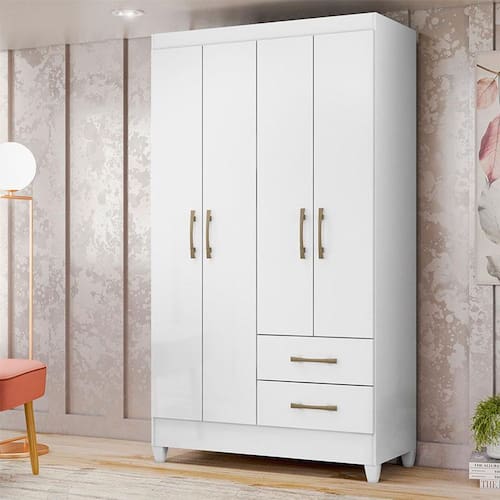 Guarda Roupa Solteiro Ambiente Chile 4 Portas Branco Brilho - Moval