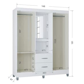 Chegou a hora de deixar seu quarto organizado e cheio de estilo! Apresentamos o Guarda Roupa Solteiro Cordoba 4 Portas desenvolvido pela Poquema com estrutura em MDP, amplo espaço interno com cabideiros, prateleira e gavetas, e design super sofisticado que inclui espelho, não perca mais tempo para transformar seu ambiente deixando ele um sonho de consumo, aproveite!