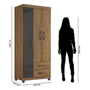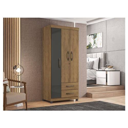 Guarda Roupa Solteiro Ambiente Lion 3 Portas Freijó Grafite Perolizado - Móveis Leão