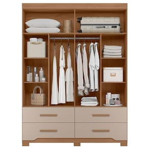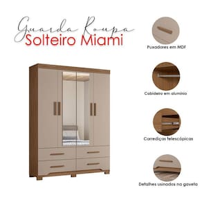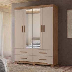 Começou a montar seu quarto? Então apresentamos para você este belo guarda roupa da linha Miami. Seu design moderno com quatro portas, sendo as duas centrais com espelho. Além disso, possui quatro gavetas equipadas com corrediças telescópicas, garantindo um deslizamento suave. Os puxadores em MDF e pés em PVC completam o acabamento sofisticado. Fabricado pela Moval, é desenvolvido em 100% MDP de alta qualidade, ideal para quem está procurando otimizar o espaço com estilo e organização, aproveite!